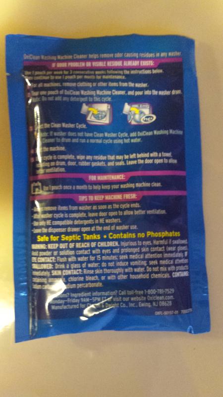 OxiClean Washing Machine Cleaner with Odor Blasters helps remove odor causing residues in your washer leaving it looking clean and smelling fresh as new. Use one pouch once a month. When your washer is clean your detergent can work better and your.